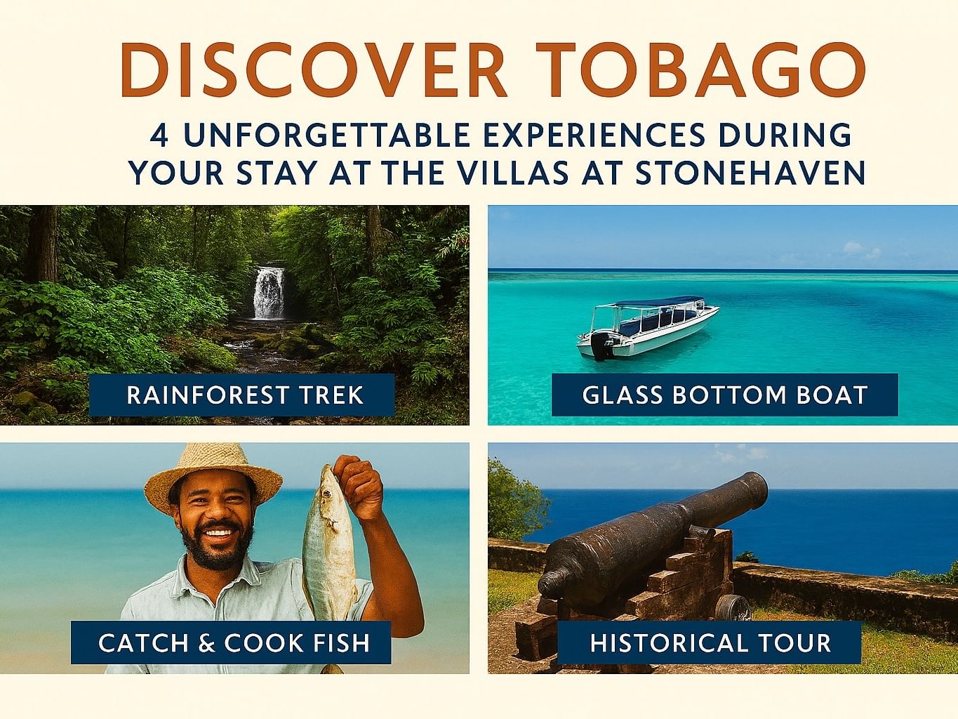 Tobago is more than just pristine beaches—it’s a destination rich in culture, history, and adventure. When you stay at The Villas at Stonehaven, you’re perfectly positioned to explore the island’s hidden gems. Here’s a curated 4-day itinerary that blends nature, culture, and authentic Tobagonian experiences.